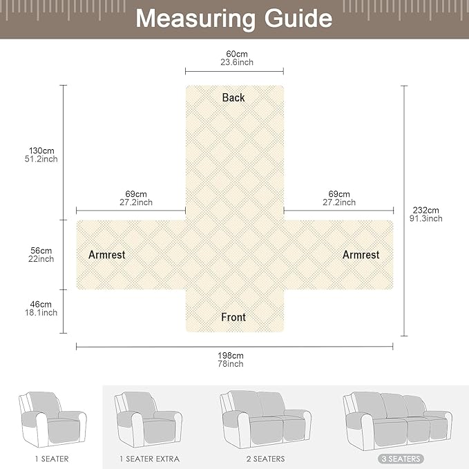 - 【DIMENSIONS GUIDE】 Small pet recliner cover fit a chair with a seat width of 23.6 in, see measurement guide in photos. NOTE: Please confirm the size before purchasing.(Due to some lighting reasons, the color of each display will be different, so please refer to the actual color.)
