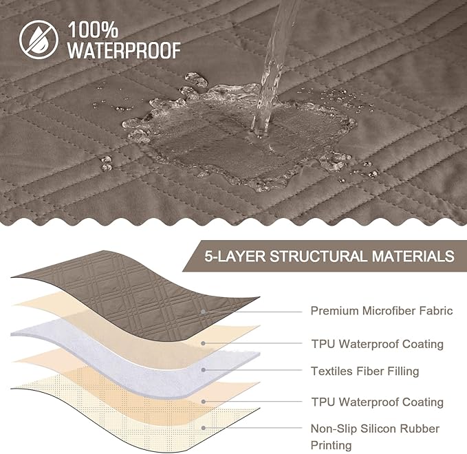 TAOCOCO 100% Waterproof Reclining Chair Cover, Non Slip Chair Covers for Recliners with Arms, Washable Recliner Chair Cover Furniture Protector for Kids, Pets(Recliner Chair, Taupe)