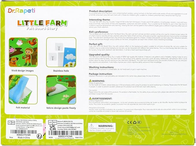 - Preschool Early Education: Dr.Rapeti felt story board set is great for kids’ imagination and creativity ability, helps them know about farm animals and develop their hand-eye skill. It can also improve the interaction between parents and kids