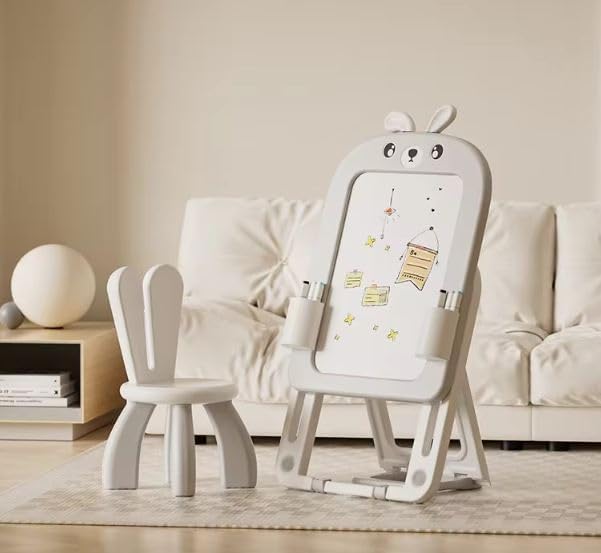 - Children's easel board comes complete with a chair, markers, and eraser, ensuring hours of entertainment for your little one. Watch as your budding artist unleashes their creativity with this fantastic easel board.