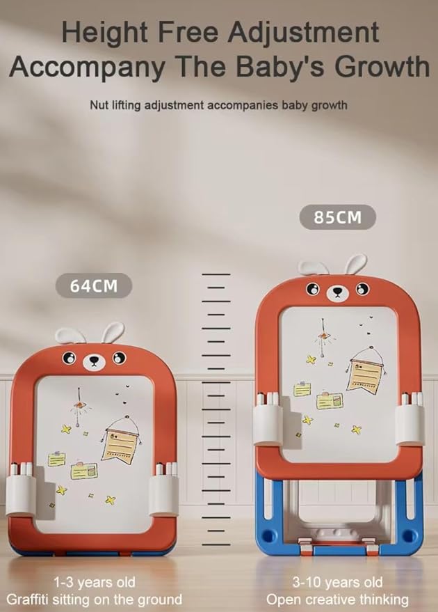 - The easel is adjustable in height, designed to grow with your kids through the years.