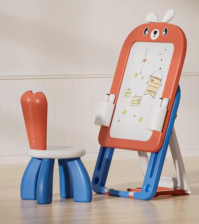 - Children's easel board comes complete with a chair, markers, and eraser, ensuring hours of entertainment for your little one. Watch as your budding artist unleashes their creativity with this fantastic easel board.