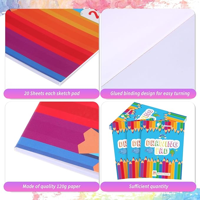 - Kids Sketch Pad Set: this sketch pad for kids set arrives complete with 3 drawing books, each with 20 sheets to fully meet your child's drawing requirements; This sketchbook for kids is designed not just for doodling, but also as a tool to help children explore their creativity and enhance their imaginative skills