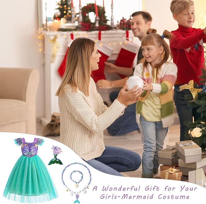 - 【Mermaid Dress Up for Girls】: Mermaid costume comes with shell necklace, shell bracelet and hair clip. Let your children explore the underwater world.