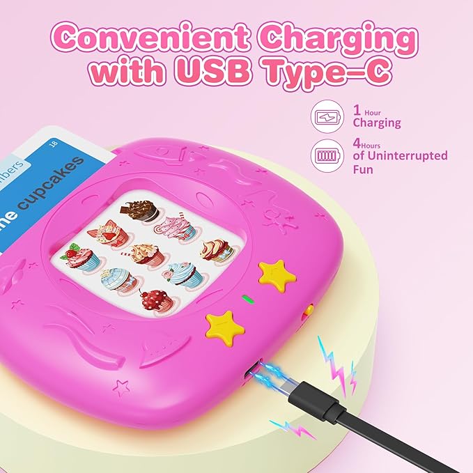 Toddlers Talking Flash Cards with American Accent & 144 Sight Words, Speech Therapy Toys for 3 4 5 6 Years Old Boys and Girls (Pink)