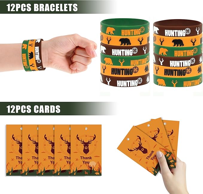 - Great party favors: the set of hunting or camo party favors, rubber bracelets and button pins have great design and are suitable for kids and adults. They will be a great hit at your party!