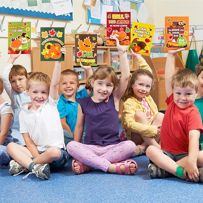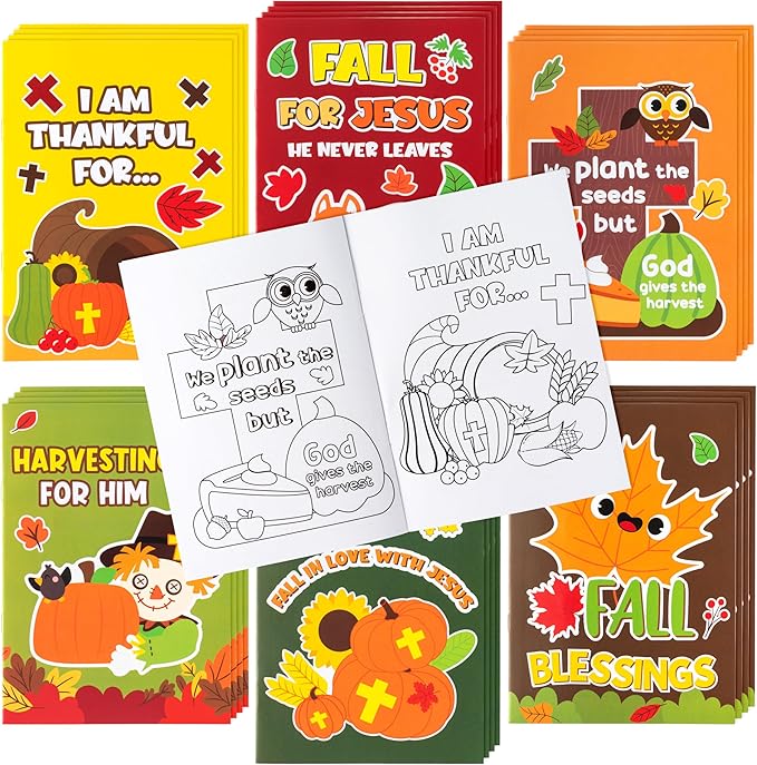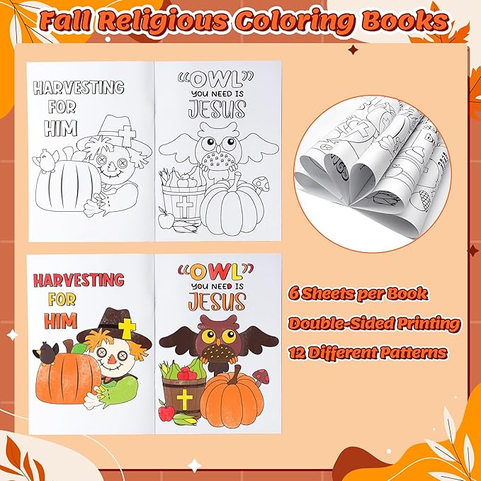 24Pcs Fall Religious Coloring Books - Christian Bible DIY Color-in Pages Booklet Bulk Drawing Autumn Theme Activity Party Supplies for Sunday School Classroom Rewards Artwork Gift for Kids
