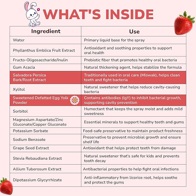 - 🌙【NIGHT BOTTLE SAVER】Designed to protect your baby's teeth as kids cavity repair during night feedings, help kids bad breath and promotes healthy teeth and gums. Our Anti-Caries Oral Spray, with IgY antibodies from Japan, protects your baby's teeth and is safe to swallow without rinsing