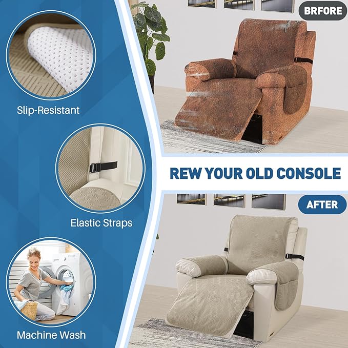 - 【100% Waterproof & Practical Storage Pockets on Both Sides】Easehomey recliner cover is made from waterproof treated premium grade material to ensure that I am 100% waterproof and leak proof. This protects your recliner from drinks, spills and everyday wear and tear, ensuring your furniture is always clean. The recliner cover has practical pockets on both sides for storing your frequently used items