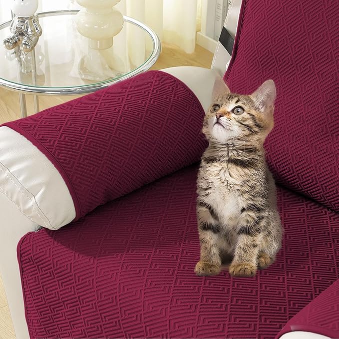 Easehomey Waterproof Recliner Chair Cover,Non-Slip Recliner Cover with Two Pockets Elastic Straps Slip Covers for Recliners with Arms Washable Reclining Chair Cover Furniture Protector(Wine Red,23.6")
