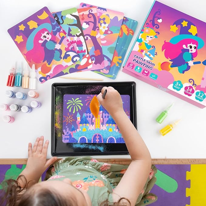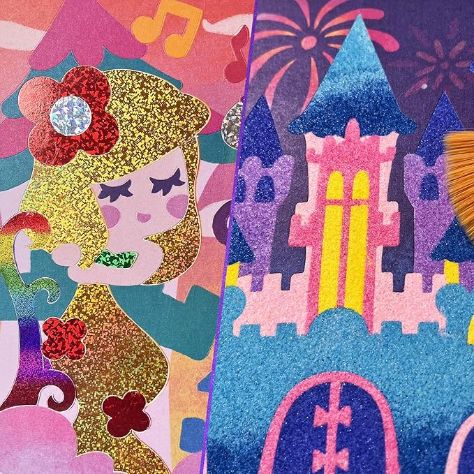 - 【Great craft gifts】Ideal for ages 6-8, this enchanting sand art kit featuring princesses, castles, unicorns, and magical themes makes a delightful gift for birthdays, holidays, Christmas, or parties. It encourages creativity and imaginative play without screens