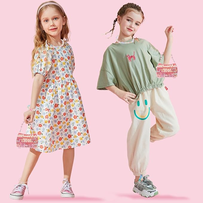 - kids bracelet-making kit: This pink handbag bead set includes one pink handbag storage box, eight different types of beads, a clear 2m elastic string, and easy-to-follow instructions. The Pink Handbag Bead Box is a jewelry-making kit for girls aged 4-6.