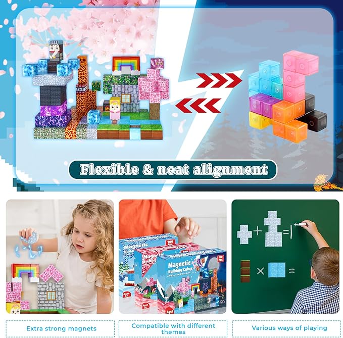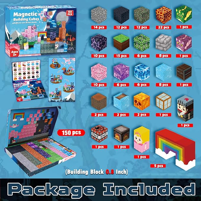 - 【Dark Swordsman's Forest Castle Magnetic Cube Kit】Including 150 magnetic cubes in 18 colors. Idea booklet with the storyline and beautiful patterns, keep them busy in clever ways. GraceDuck magnetic activity cubes are made of high-quality ABS material and crafted with round edges. Unlike other magnetic toys on the market, our magnetic cubes kit has super strong internal magnetic, which is easier for toddlers ages 3+ to stick the cubes together and make builds sturdy. Perfect STEM toys help kids gain a deeper understanding of the structure and learn about magnetic properties!