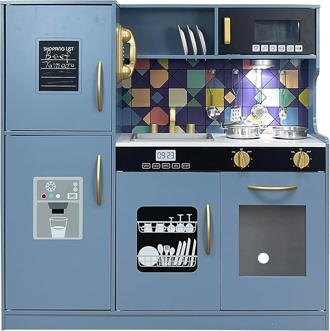 - šGeat gift- Not only provides fun playtime for young children, but is also important for education. The perfect play kitchen for 3-8 year olds is ideal for creative role play toy and the perfect gift for kids.