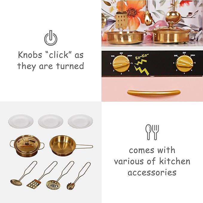 - šGeat gift- Not only provides fun playtime for young children, but is also important for education. The perfect play kitchen for 3-8 year olds is ideal for creative role play toy and the perfect gift for kids.