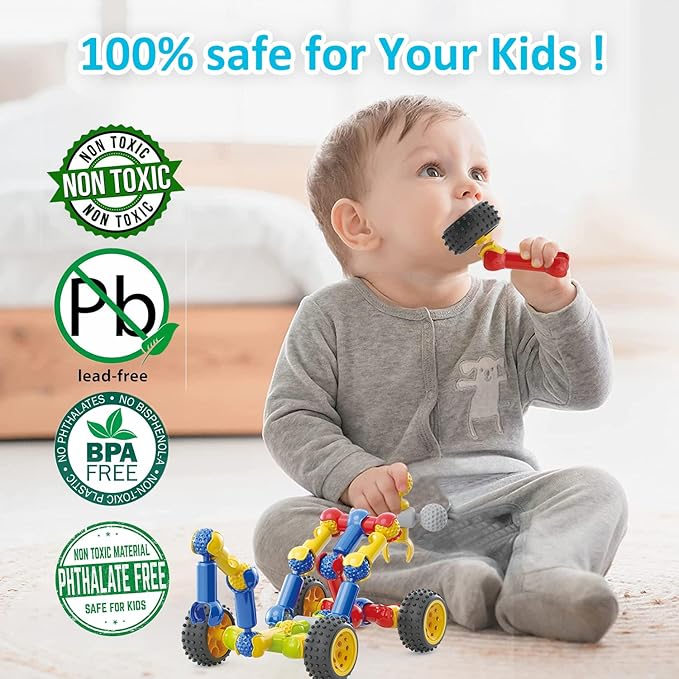 - Reusable Storage Box: The kids construction toys are easy to wash and come with a large sturdy storage box for quick and convenient cleanups, both of our building toys and storage box are made of high quality plastic and BPA, lead, heavy metal, phthalate free ,let your kids play with sensory toys with safe !
