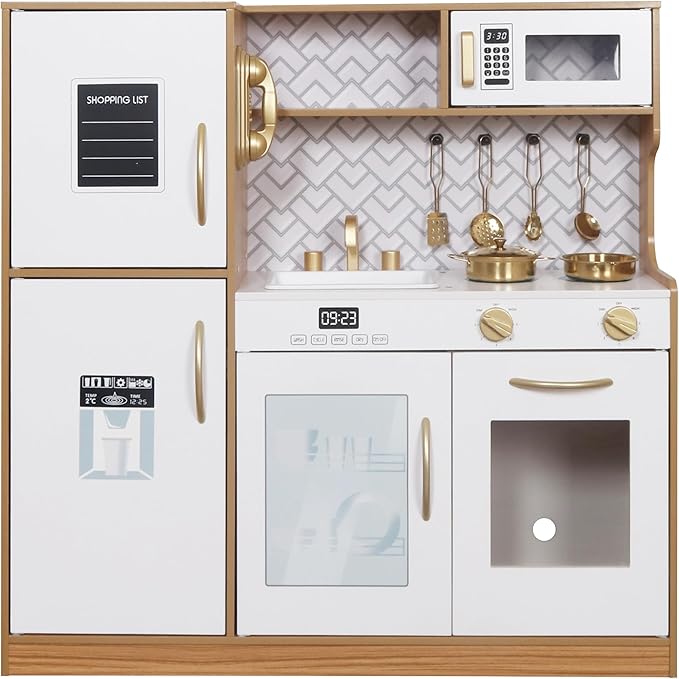 - šGeat gift- Not only provides fun playtime for young children, but is also important for education. The perfect play kitchen for 3-8 year olds is ideal for creative role play toy and the perfect gift for kids.
