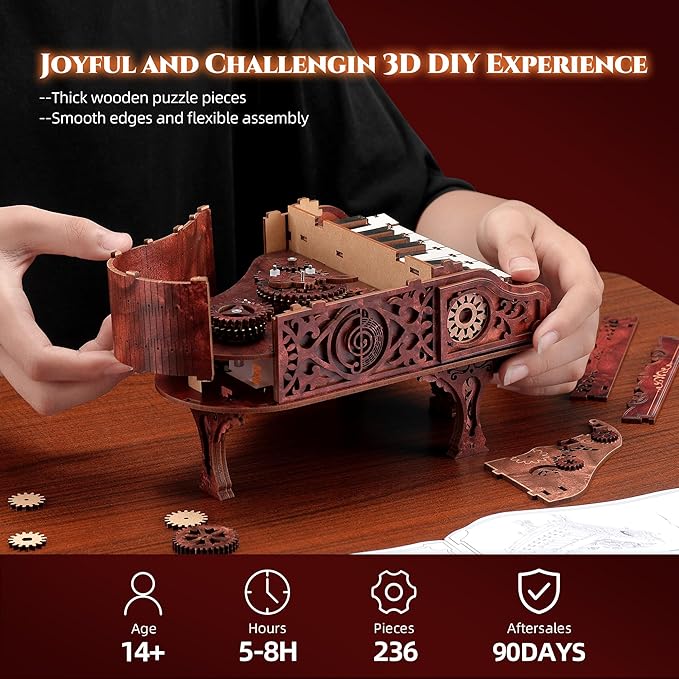 - 【Vintage Elegance & Intricate Craftsmanship】The FUNPOLA 3D Wooden Puzzle Piano Model features a retro design with exquisite detailing. Once assembled, it becomes an interactive home décor showpiece, combining elegance with engaging craftsmanship.