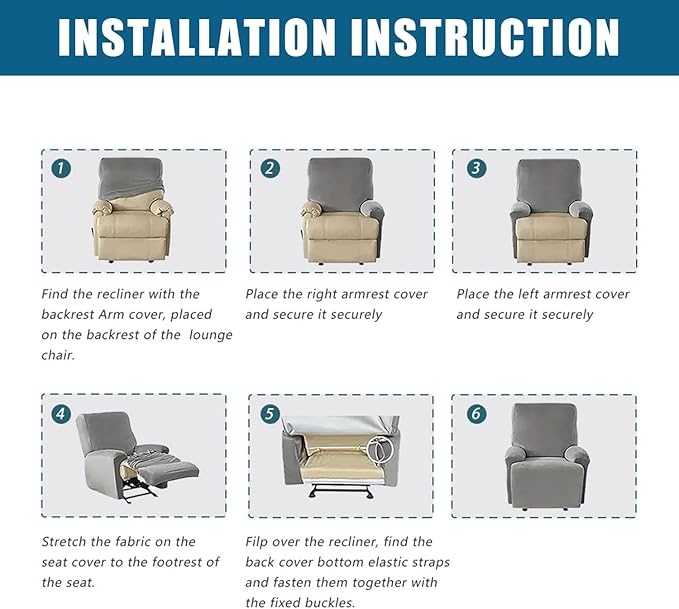 - 【WASH AND CARE】 This recliner slipcover is easy to care. Machine washable in cold water, tumble dry on low heat, please do not bleach or iron it.Check the installation guide carefully, it can be finished within 10 minutes by one person.