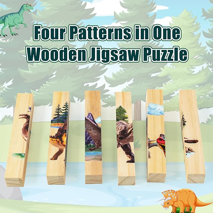 - Fun Educational Toys: Nurture your child's curiosity and cognitive skills with our 4-in-1 Woodland Dinosaur Puzzles. Each twist and turn of the wooden blocks not only builds problem-solving abilities but also introduces them to the enchanting world of forest creatures.