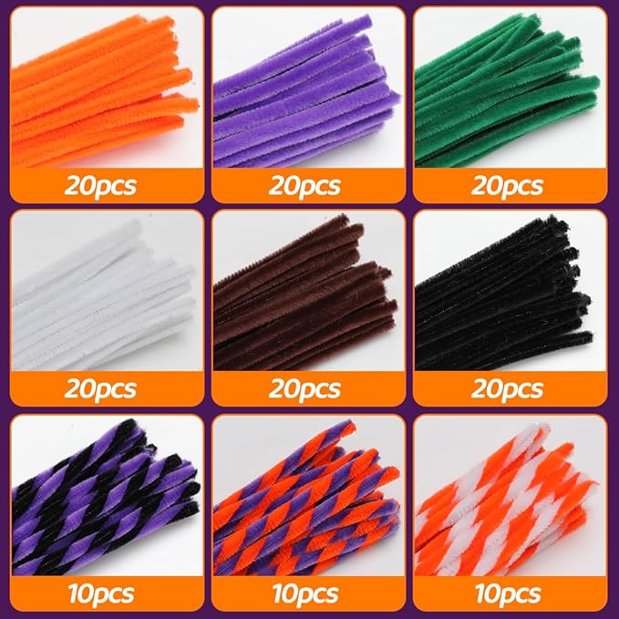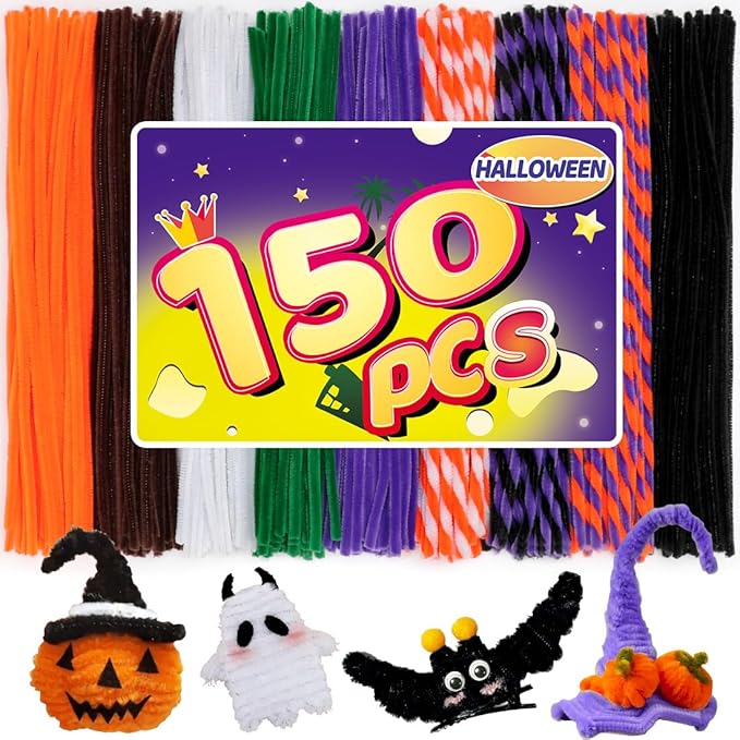 Bundooraking Pipe Cleaners, Pipe Cleaners Craft, Arts and Crafts, Crafts, Craft Supplies, Art Supplies (150pcs Halloween Multi-Colored Chenille Pipe Cleaners)