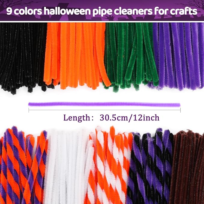 - Great value: 150 pcs 9 colors Halloween Multi-colored Chenille Pipe Cleaners, approx 6.5mm in diameter, 305mm in length.