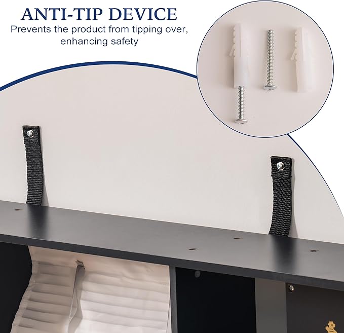 • Safety First: Equipped with an anti-tip device, our play kitchen ensures that the product stays securely in place, preventing any risk of tipping over and enhancing the safety of your child during playtime.