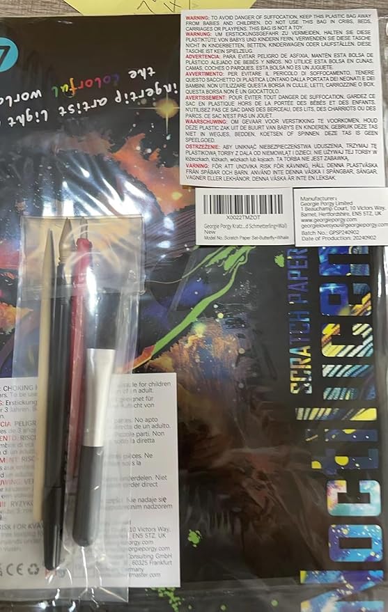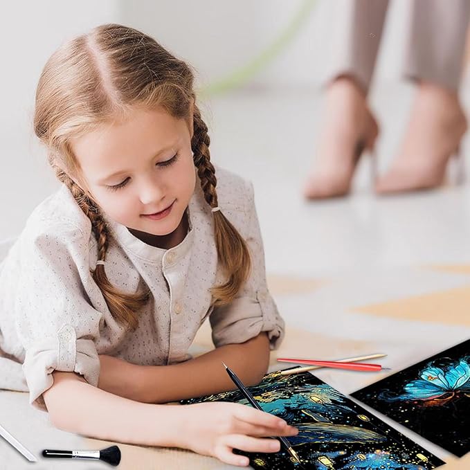 - Super Value Set: The package includes 8 sheets of glow in the dark scratch paper cards(29*21cm), 1 gold scratch pen, 1 red scraper, 1 black brush, 4 plastic scratch pen, 1 wooden stylus