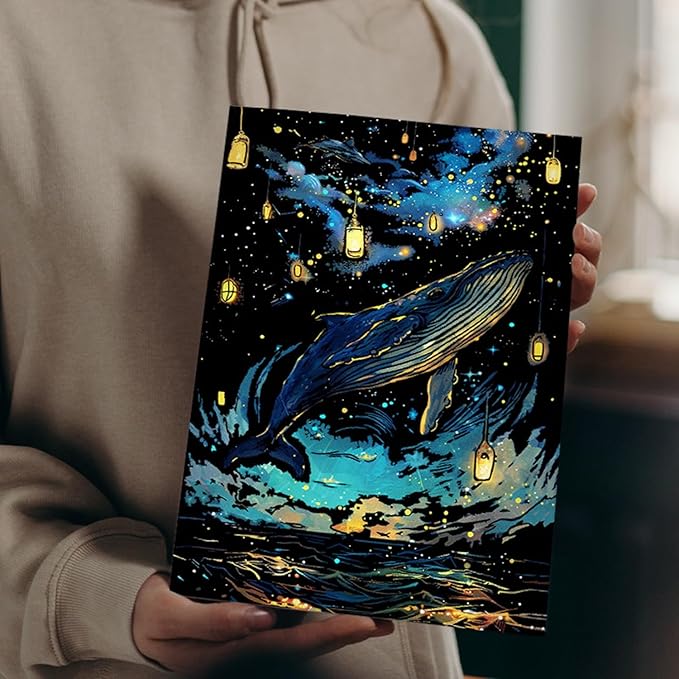Georgie Porgy Scratch Paper Art Set for Kids Adults Magic Rainbow Painting Boards for DIY Arts and Crafts Kits Christmas Birthday Gift with Scratching Tools Kit (Glow in The Dark Butterfly + Whale)