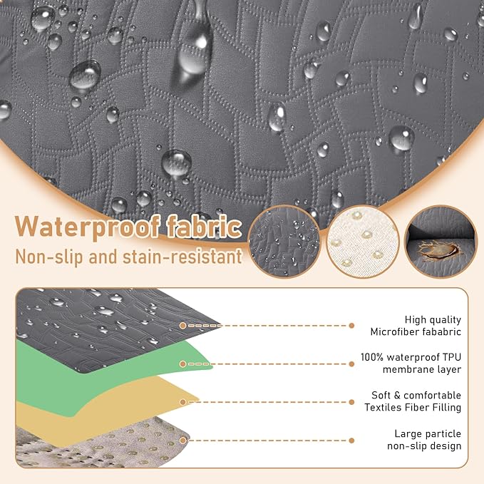 • 100% Waterproof Protection: The top of the recliner covers is coated with a waterproof layer, complemented by a TPU waterproof layer in the middle, offering a dual defense system to ensure 100% waterproof and leak-proof functionality. This innovative waterproof feature serves as a shield to safeguard your recliner from any spills, liquid mishaps, and daily wear.