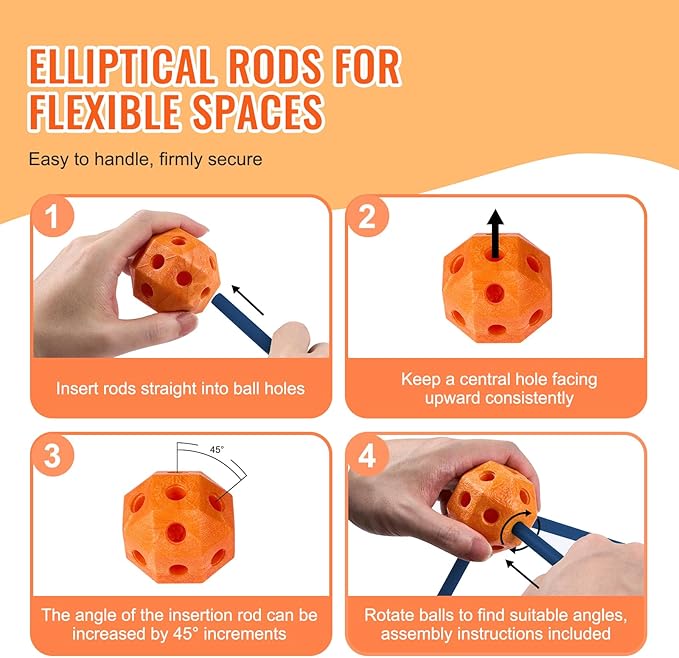 - 120-Piece Fort Building Kit: Explore endless possibilities with our kids fort building kit! It includes 40 solid balls and 80 lightweight yet durable connecting rods. Perfect for kids aged 4 and up to create their own 3D spaces—build forts, tents, pyramids, rockets, and more with parental guidance.