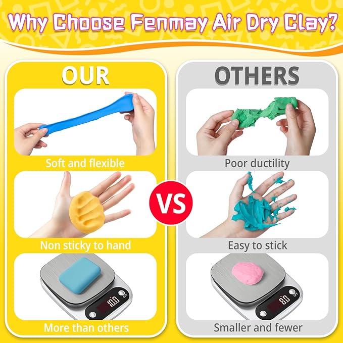 - Soft and Non-Sticky: So soft to the touch that you can bend it as much as you want and it won't leave residue on your hands. Air dry clay is easy to mold into the shapes and patterns you want. Perfect for school diorama project, Christmas, family craft time
