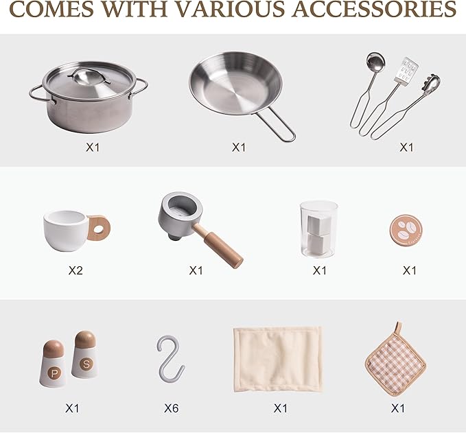 - EXCITING GIFT, GROWING COMPANION: Whether it's for a birthday, Christmas, or any special occasion, this deluxe kids' kitchen set makes an ideal gift. It offers hours of entertainment and accompanies children as they grow, fostering independence and a sense of responsibility.
