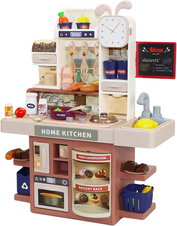 - 【The Perfect Gift for Toddlers】Whether you're searching for a birthday gift, holiday present, or special surprise, our kids kitchen playset toy set is an excellent choice for toddlers. Its captivating packaging, wide range of kids kitchen kit, and endless play possibilities make it a standout gift. Ideal for birthdays, parties, pretend play, role-playing, educational activities, and fostering social skills, this kitchen toy set will bring joy and smiles to any child's face.