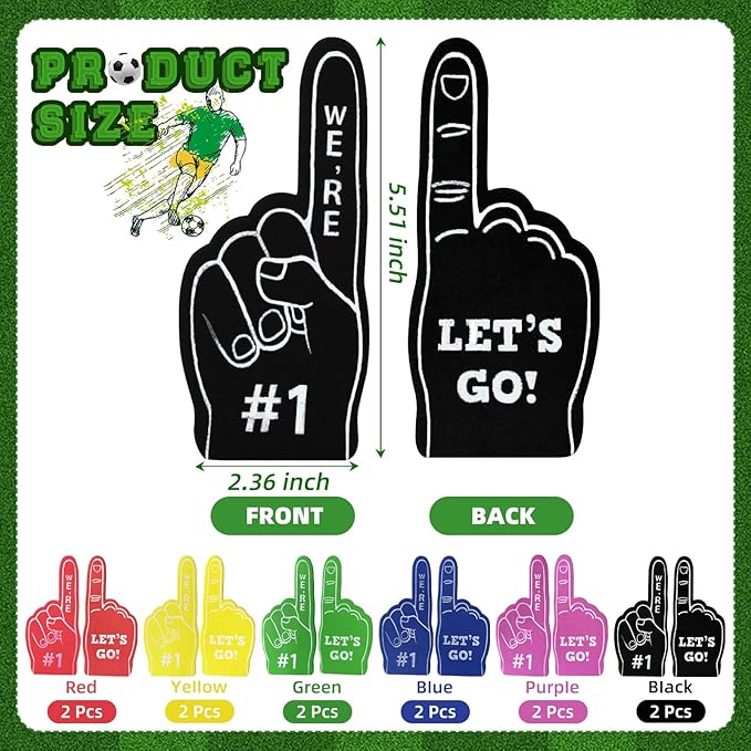 - 12 pieces of Handheld Photo Props mini foam fingers in vibrant colors, ample quantities, these finger signs are an interesting supplement to your daily necessities; These foam fingers for sports can be applied to various sports parties, the size of the foam finger is 2.36 x 5.51 inches