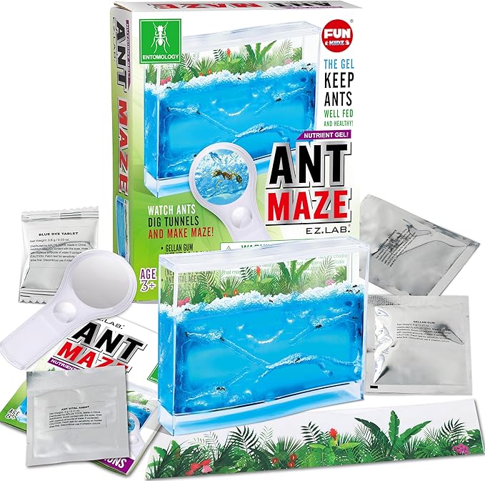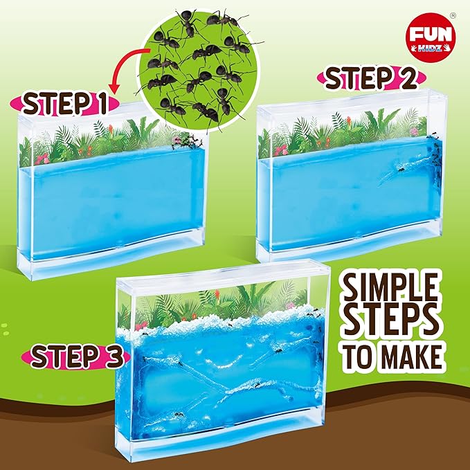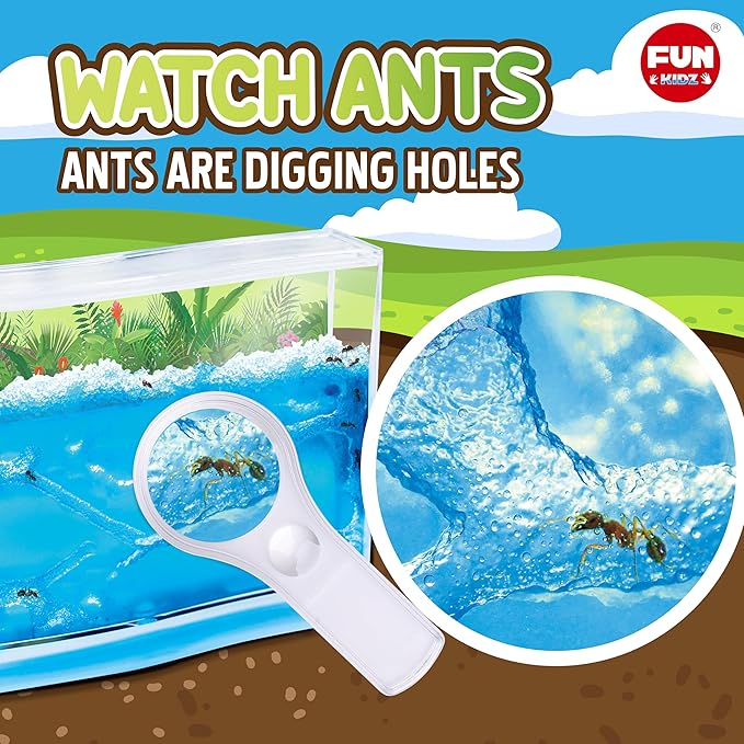 Science Ant Farm Kit for Live Ants, FunKidz Ant Colony Habitat Kit for Kids Gel Bug Terrarium House Watch Ants Dig Tunnels Entomology Learning Toys for Boys Gift