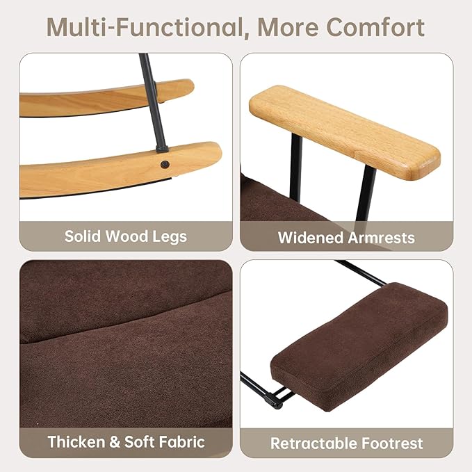 - VERSATILE & STYLISH FOR ANY ROOM: With its sleek, modern design and neutral color options—beige, green, grey, or brown—this chair is perfect for any space. Whether used as a nursery rocking chair, living room accent chair, or bedroom reading nook, it seamlessly blends style and function.