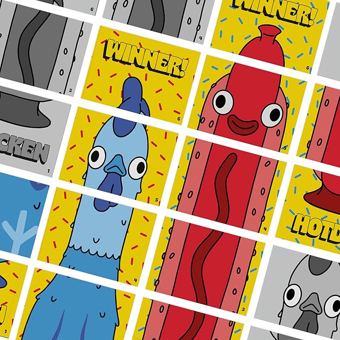 - RACE TO FLIP ‘EM AND STICK ‘EM: Introducing a family party game about flipping chickens and throwing hot dogs into the air. Still not convinced? Well, keep reading!