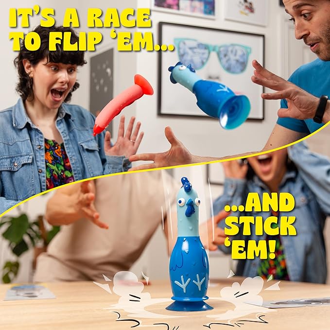 - IT’S CLUCKING BRILLIANT! A fun and frantic family game for the entire family. It only takes 10 seconds to learn… but we guarantee you’ll be flipping and sticking for hours.