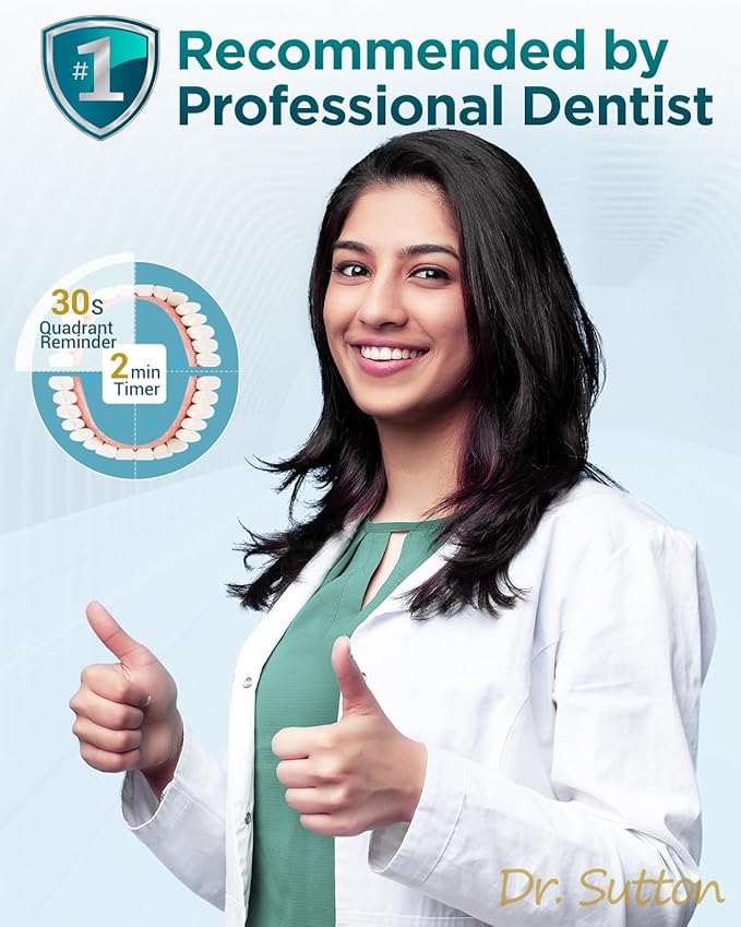 - Smart Vibrating Alert Timer & IPX7 Waterproof - The built-in smart timer features 30-second intervals to remind you to move to the next quadrant of your mouth, totaling 2 minutes for complete coverage. This ensures you achieve the scientifically recommended brushing time. With an IPX7 waterproof design, it ensures reliable protection against accidental water submersion and allows for safe use in wet environments, such as bathrooms or during showers.