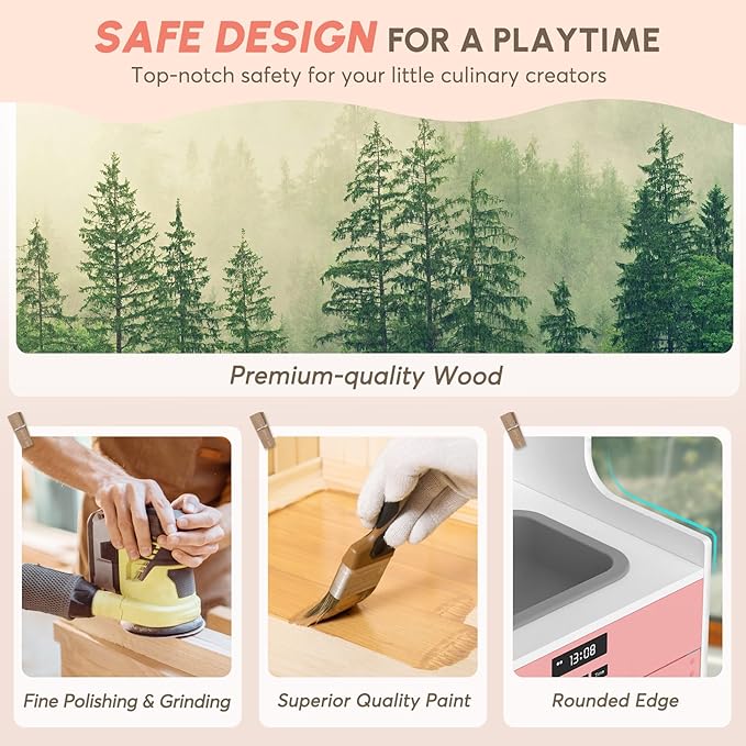 • Superior Safety Design: Safety is the top priority for every product, and it’s a key focus of ours. This play kitchen features rounded corners & anti-tipping to prevent injuries while your child explores the world of pretend cooking. Whether playing alone or with others, this children’s kitchen is the ideal choice for your little one.