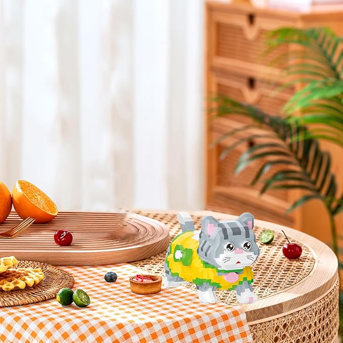 Cute Animal Building Blocks, Pet Micro Mini Building Blocks for Adults and Kids Age 6+ Gift Toy 835 Pcs (Yellow Cat)