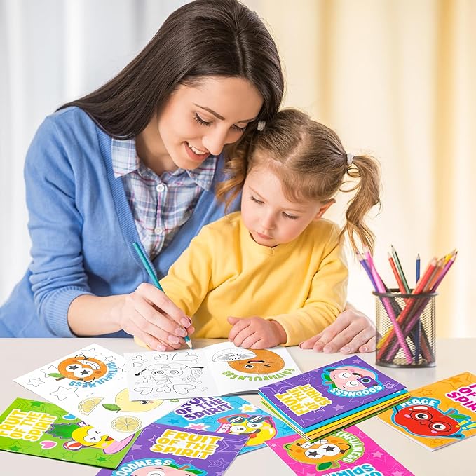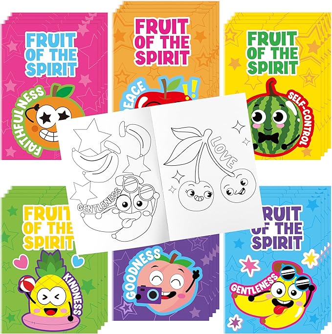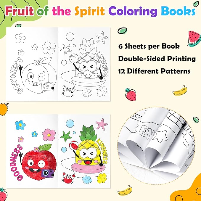 24Pcs Fruit of the Spirit Coloring Books - Religious Bible DIY Color-in Pages Booklet Bulk Drawing Holiday Christian Activity Supplies for Sunday School Classroom Reward Artwork Gift for Kids