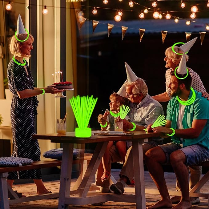 - ENDLESS FUN: Celebrate holiday and party with our glow sticks to enhance the ambiance. It's also great for neon party favors, birthday party favors, concerts, pinata fillers, goodie bag stuffers, pool parties, Mardi Gras, wedding, camping trips, Christmas party favors, etc.