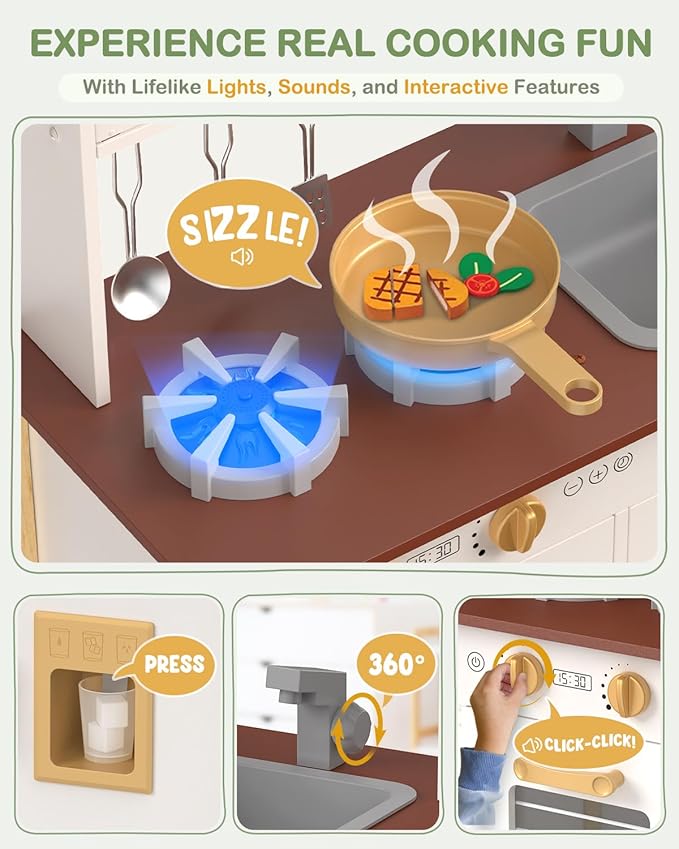 - Premium Wooden Play Kitchen: Crafted from high-quality wood, this kitchen playset is designed for durability and smooth play; suitable for children ages 3 and up