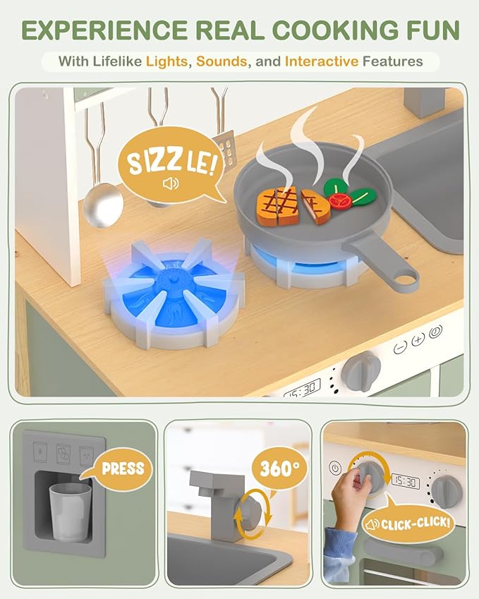 - Premium Wooden Play Kitchen: Crafted from high-quality wood, this kitchen playset is designed for durability and smooth play; suitable for children ages 3 and up