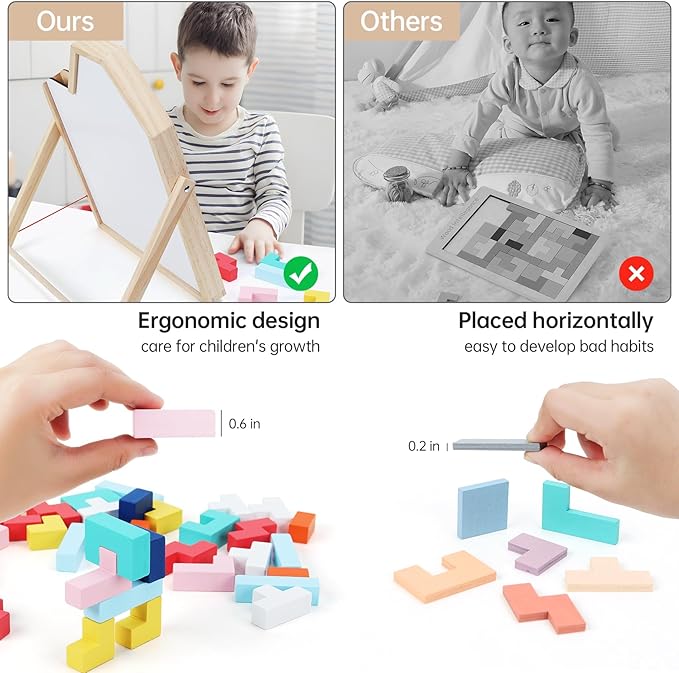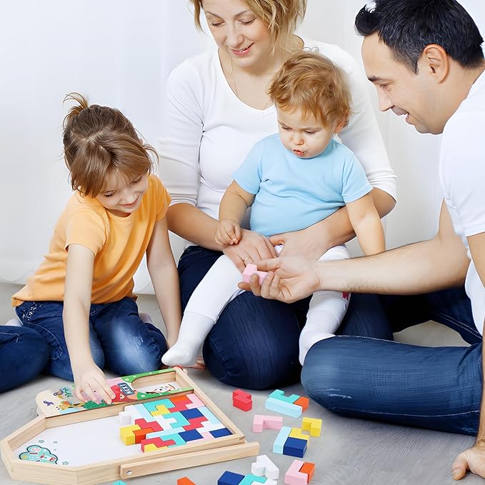 - Engaging Puzzles: Set includes colorful 3D Russian Blocks and brain-teasing Tangram jigsaws to develop problem-solving skills.
