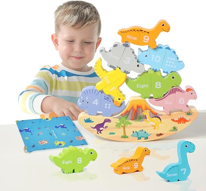 Magnetic Dinosaur Stacking Toys for Toddlers Age 1-3, Montessori Wooden with Numbers, Educational Balance Toy for Boys & Girls Easter Gift for 1 2 3Age, Dinosaur Stacking Game for Preschool Learning