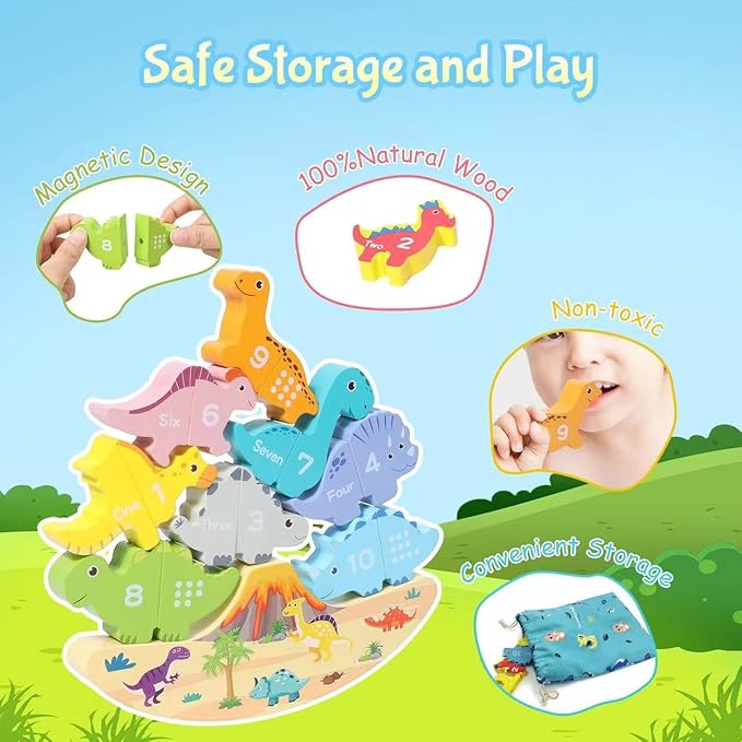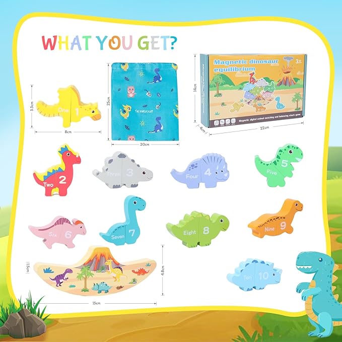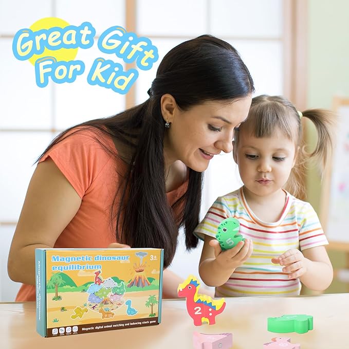 - Educational and Interactive Design:Discover the ultimate learning tool with our Magnetic Dinosaur Stacking Toy! Featuring strong magnets for easy and correct matching, each piece showcases numbers on one side and their English equivalents on the other. Perfect for teaching numbers, colors, and introducing various dinosaur species, this toy encourages hands-on play and early STEM learning for kids aged 1-7