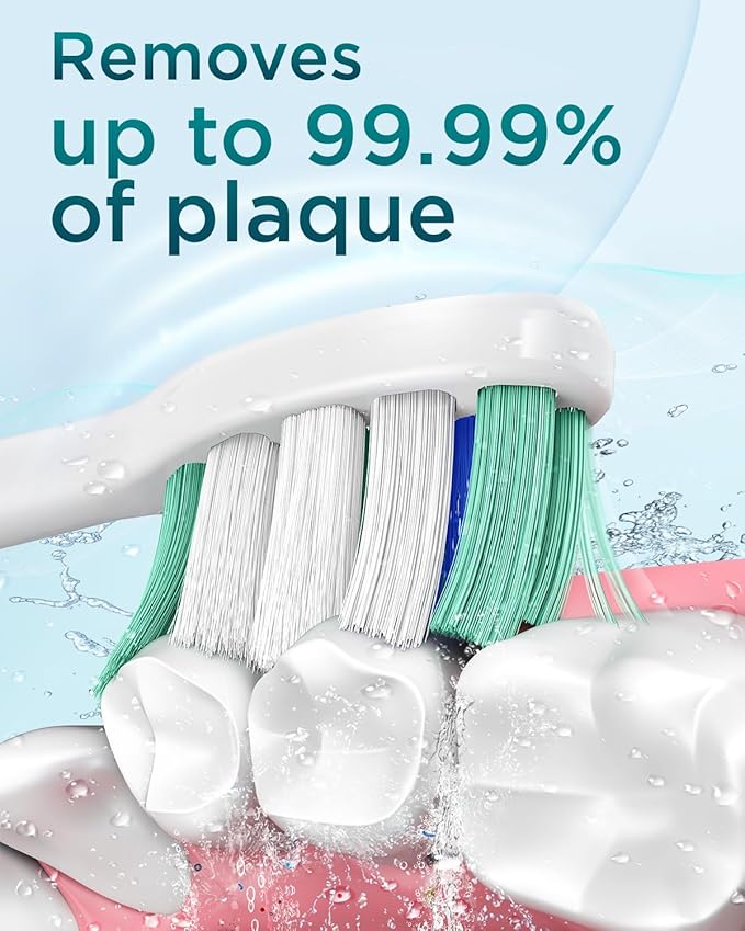 - New Upgraded Powerful Sonic Cleaning - Featuring the latest technology with up to 42,000 VPM higher vibration sonic technology, Rtauys electric toothbrush delivers an exceptional clean along the gum line, removing up to 125% more plaque and whitening your teeth. The soft, flexible bristles contour to the shape of each tooth's surface, providing 4x more surface contact and removing up to 10x more plaque from hard-to-reach areas for a deep clean.